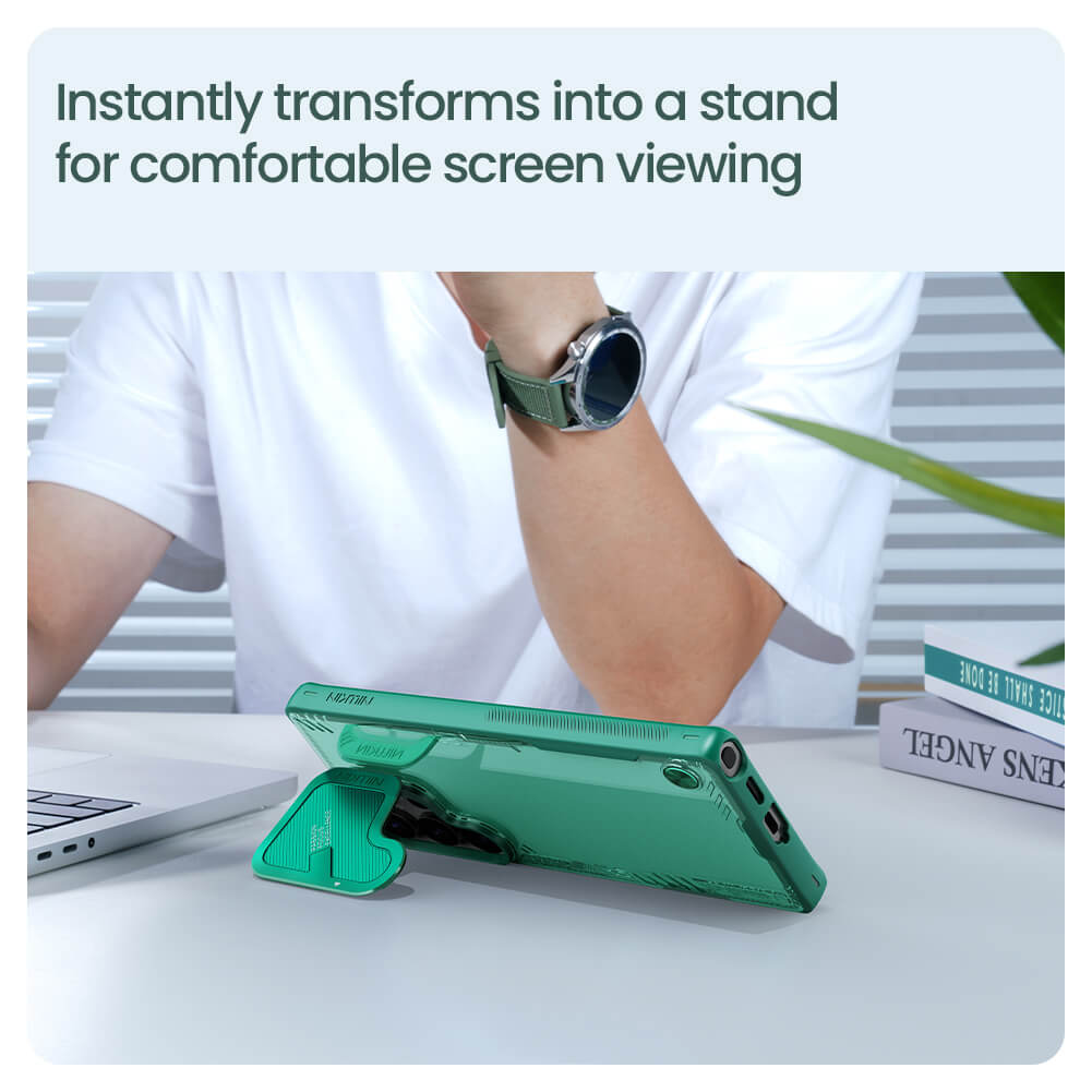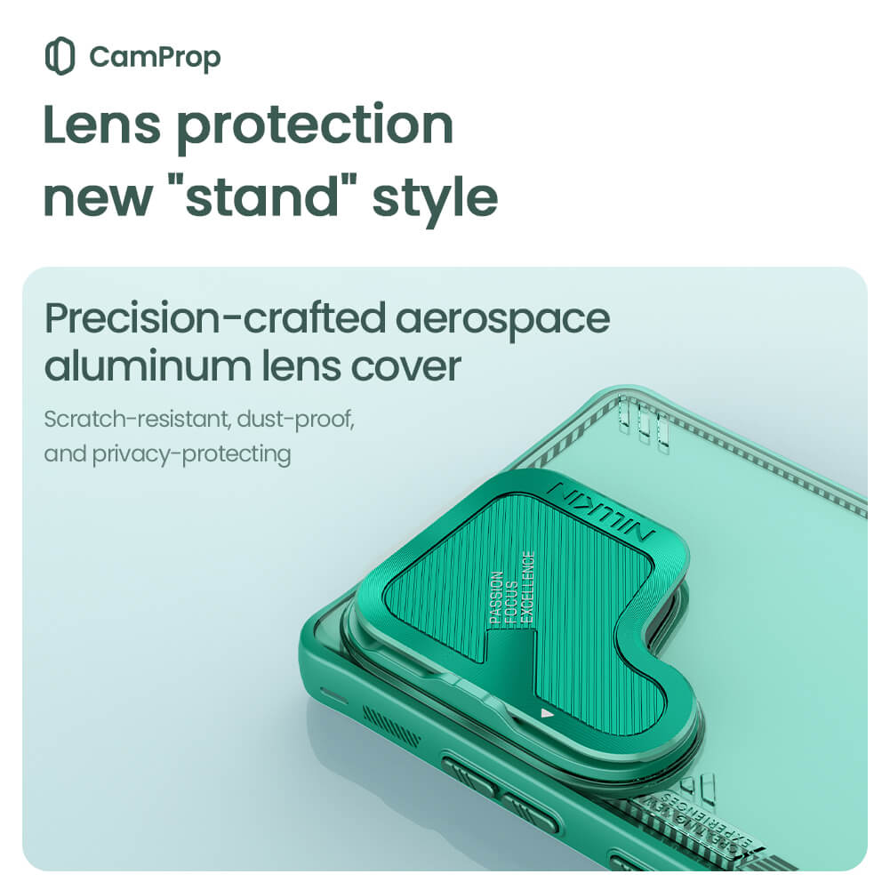 Innovative lens cover stand design, balancing lens protection and phone stand functionality. TPU+PC dual-material construction provides all-around body protection. With multifunctionality, it forms a harmonious blend of functionality and aesthetics