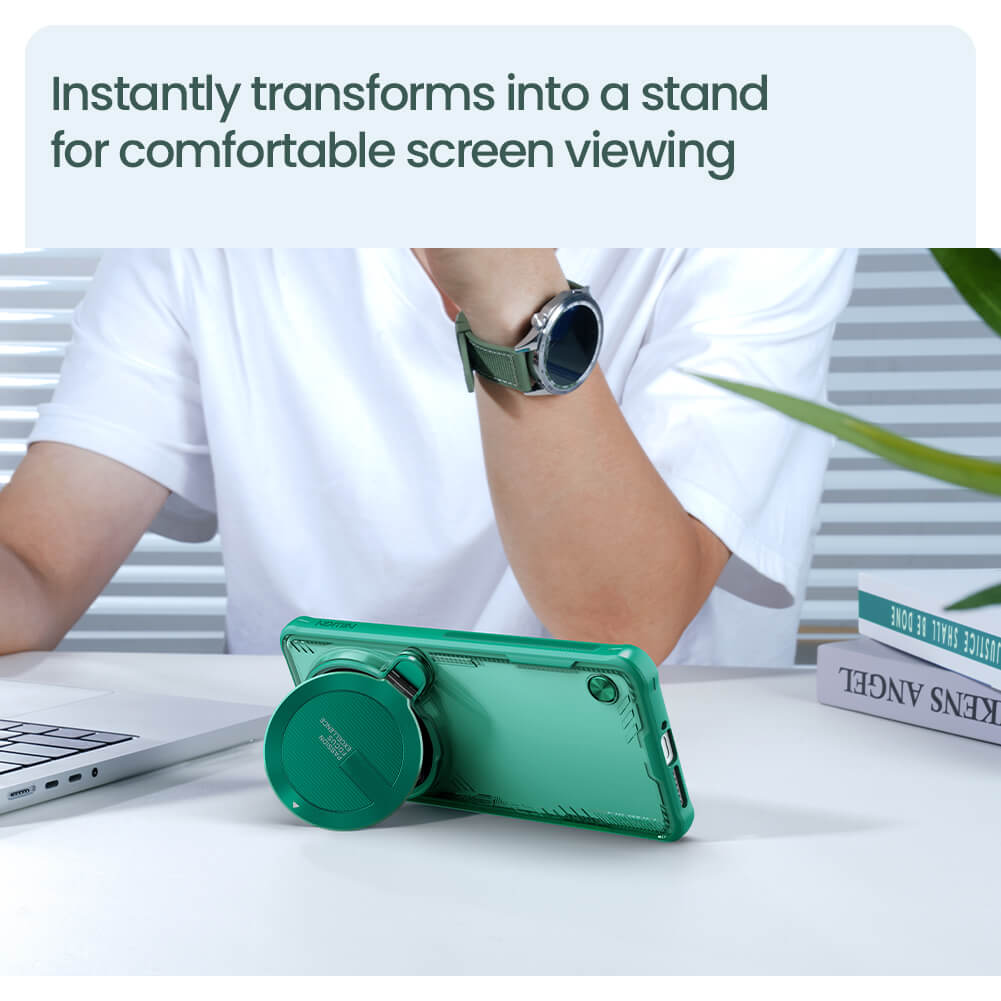 Innovative lens cover stand design, balancing lens protection and phone stand functionality. TPU+PC dual-material construction provides all-around body protection. With multifunctionality, it forms a harmonious blend of functionality and aesthetics
