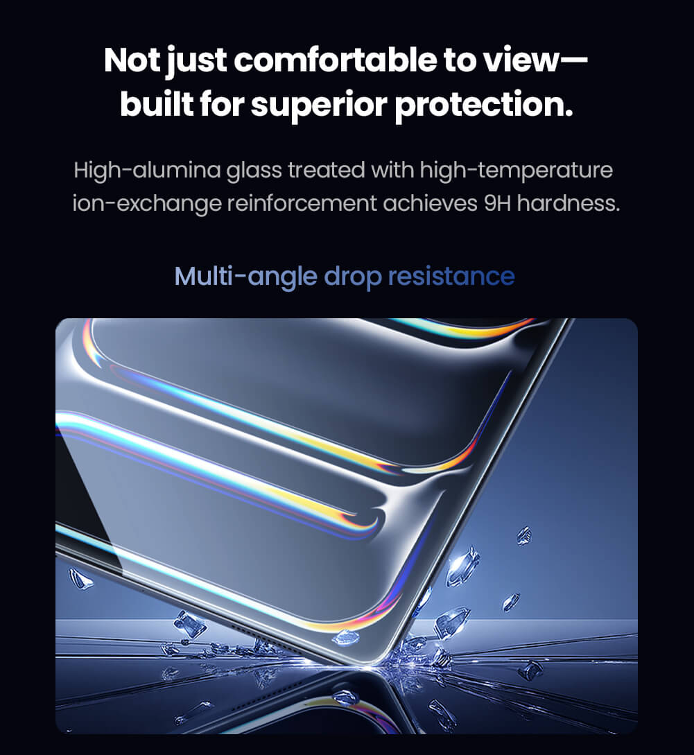 Enjoy ultra-high transparency that preserves the screen’s true colors and sharpness, while the high-aluminum glass construction delivers reliable 9H hardness to resist scratches and everyday wear. NILLKIN’s in-house anti-smudge nano coating adds oil- and water-repellent performance for a smoother glide and a cleaner screen with fewer fingerprints.